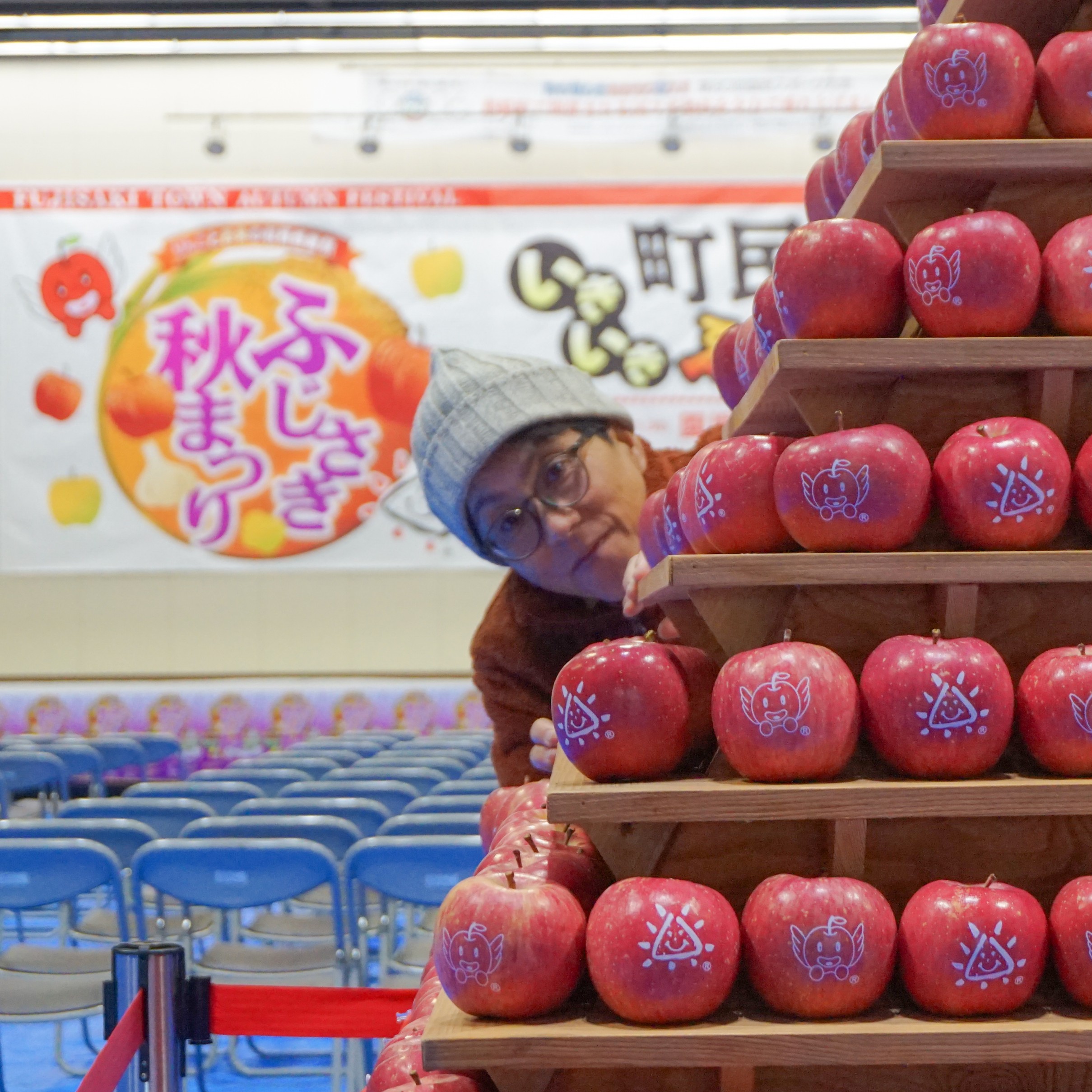 ふじさき秋まつりで無料配布される絵入りりんご🍎皆さんはゲットできましたか?ふじ丸くんとジャン坊くんが描かれているんですよ〜