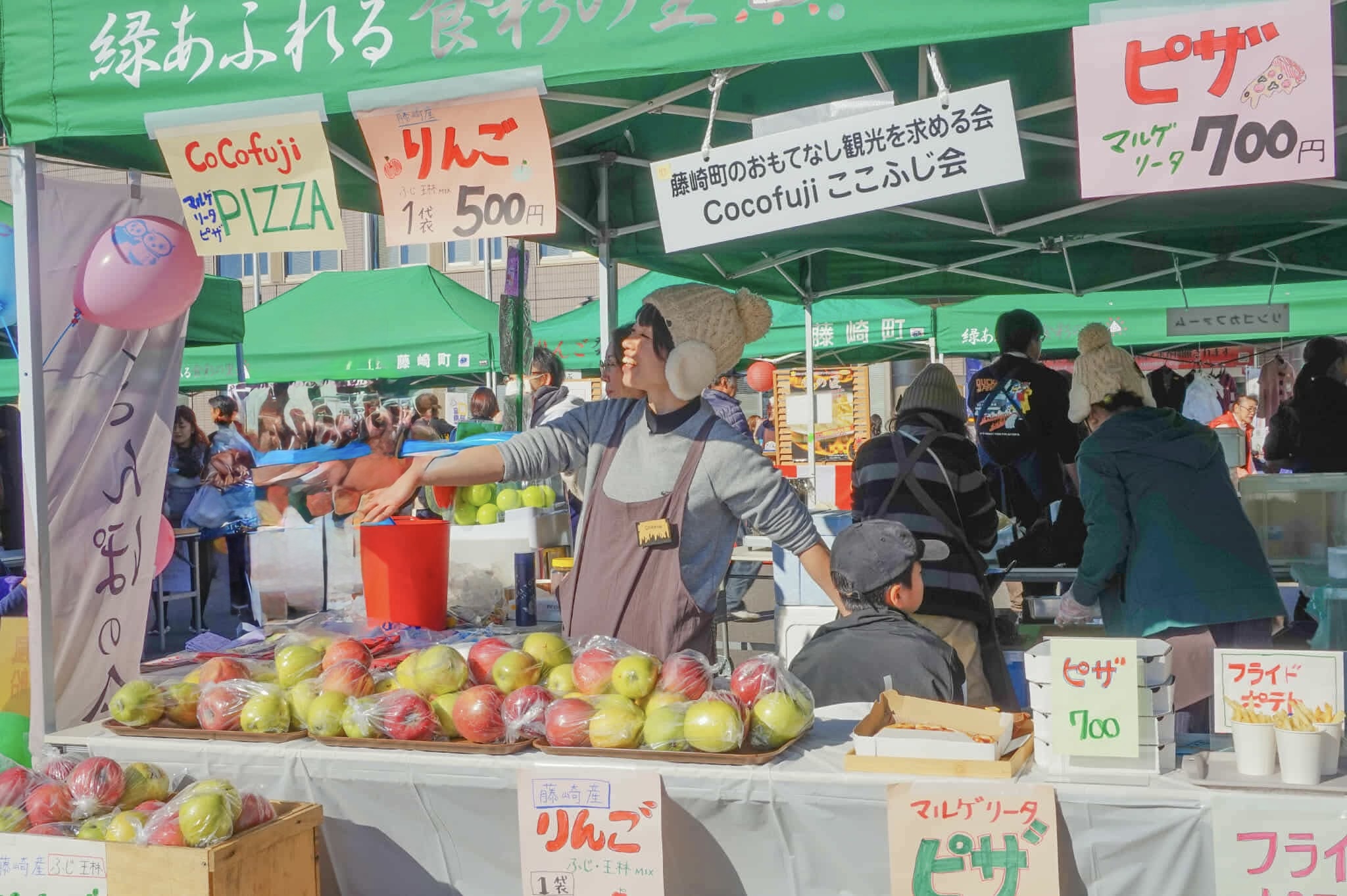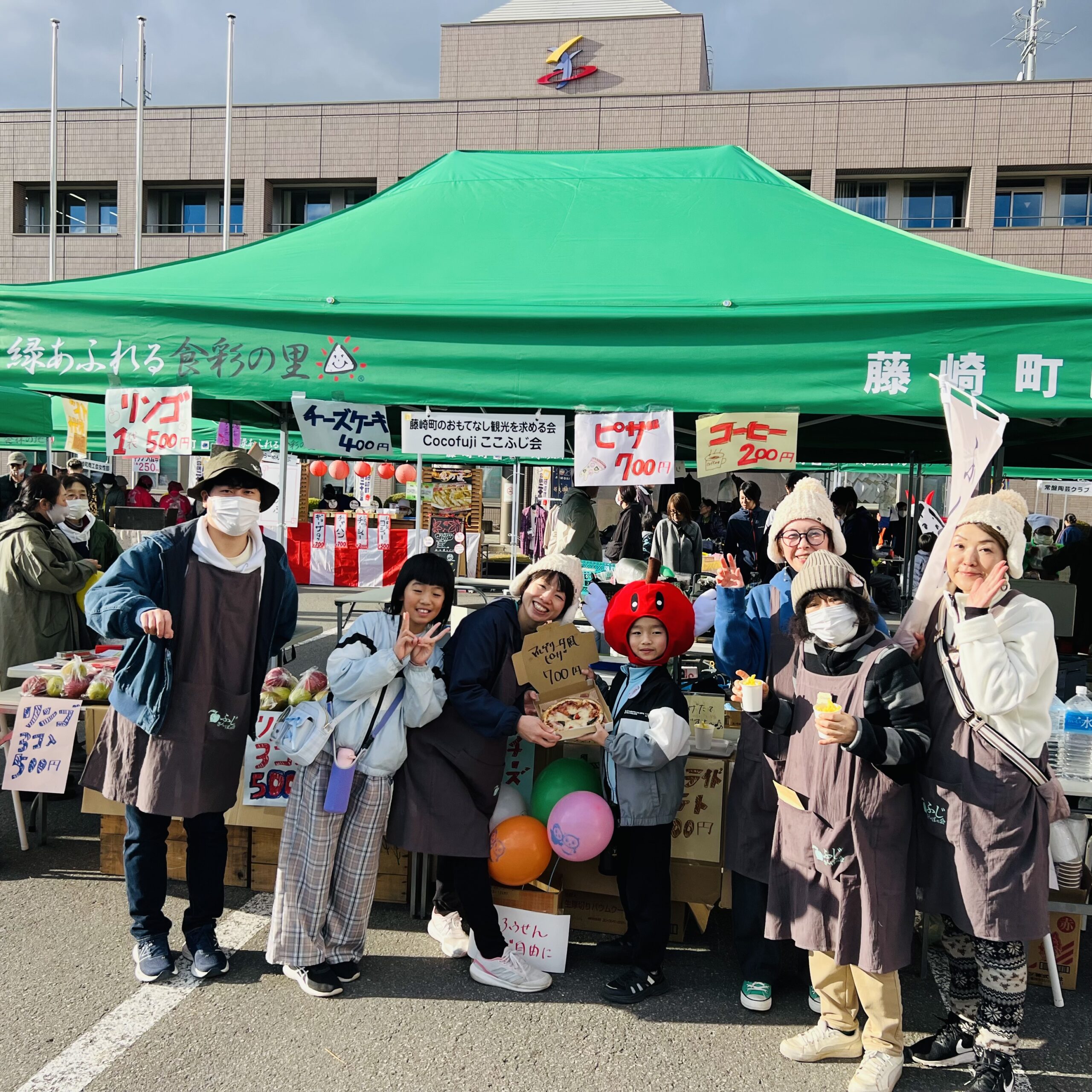 今年はピザ、ポテトをメニューに追加し、りんご、コーヒー、チーズケーキを販売♪おかげさまで天候にも恵まれ全て完売しました。ありがとうございました⭐︎